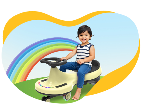 We feel happy that our product contributes to those developmental milestones & memorable fun time. Every element, such as the LED-lit wheels, vibrant colors, and ergonomic design, contributes to increased enjoyment of riding a swing car.